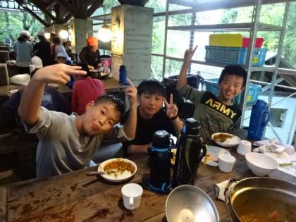 「普段は少なめの量やけれど、このカレーライスはおいしすぎて、3杯もおかわりしたわ」「私は4杯目」「なんか山の家で食べるカレーは、特においしいなあ」などの声がたくさん聞こえてきました。