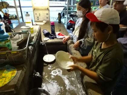 食器を洗う人や水で流す人、ふきんでふく人など、班の中で役割分担して手際よくできているところもありました。自分のできることを探して、テーブルを拭いたり、食器の数を数えたりと、考えながら片付けができていたのはすばらしかったです。