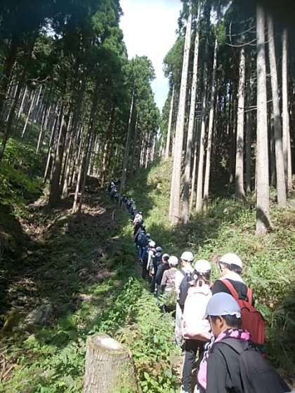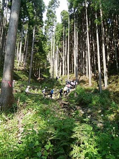 いよいよ登山が始まりました。最初は登りが続きます。始まって10分ぐらいの場所です。まだまだ序盤がんばれ5年!!