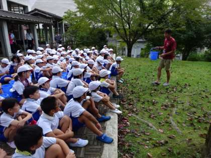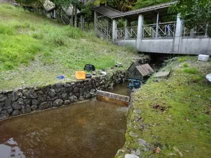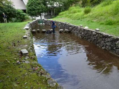 朝食を食べて、部屋を掃除したら、いよいよ魚つかみの始まりです。