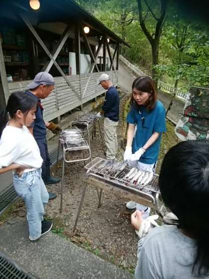 先ほど捌いた魚は炭火で焼いていきます。これは贅沢です。子どもたちが準備をしている間先生たちが魚の焼き具合を見ています。
