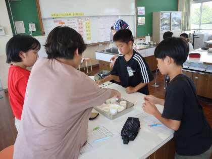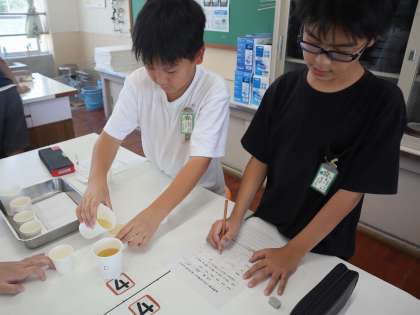 いろいろなだしを味見し、だしの大切さに気付いた子どもたち。