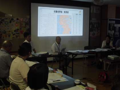 今回の学校運営協議会では、京都市教育委員会より働き方改革の説明がありました。また、学校からは学校アンケートの結果についてお話をさせていただきました。
