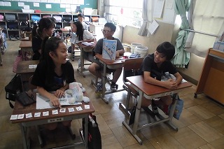 ペアに 「Do you have a pen?」などと、尋ねて相手の持っている