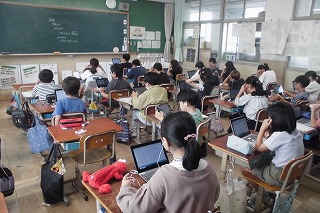 イヤホンをつけて、問題を音声で聞いたり、画面に出てくる問題をよく読んだり、