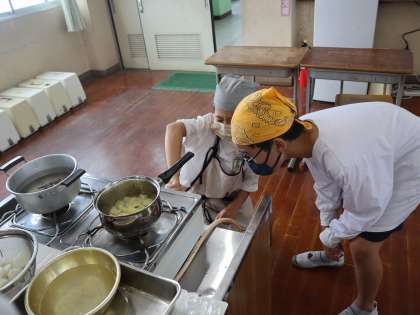 調理実習〜ゆでいも、みそ汁〜
