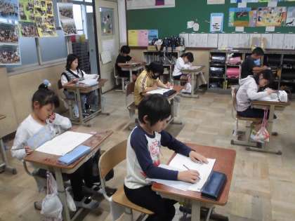 今までに学習した漢字を思い出しながら、丁寧に書いていました。何度も見直している人も多く、「満点を取りたい」という気持ちが伝わってきました。