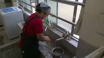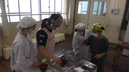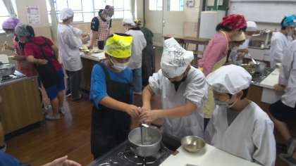 家庭科の学習でゆで芋と味噌汁の調理実習に