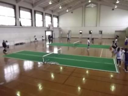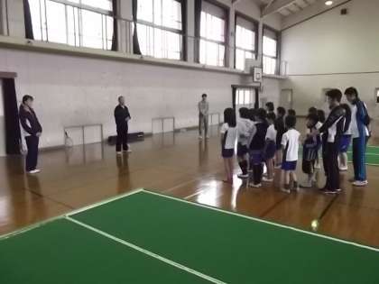 本日,5月12日(土)土曜学習(バウンドテニス)が行われました。4〜6年の16名が参加しました。今年度初めての開催で,4年生は初体験の子が多かったのですが,なかなかいいセンスをしているとほめていただいていました。