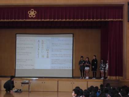 また、9・10月の月目標の振り返りもありました。3・4年生の代表委員からは、あいさつの取組に関して、「他クラス・他学年にもあいさつできた」「地域の人にも、もっとあいさつを広げていきたい」「大きな声であいさつをしたい」などの感想がありました。