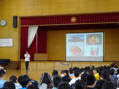 11月の思いやりの日の学習として゛「外国人教育」についてお話がありました。韓国についての紹介があり、これからお互いの文化を知って、もっと仲良くなっていってほしいです。