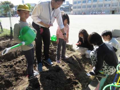 まいた後は、水やりもしました。収穫できる日が楽しみです。