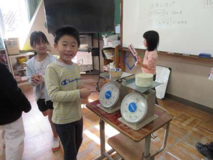 なかよし学級では、今、算数の時間に「重さくらべ」をしています。