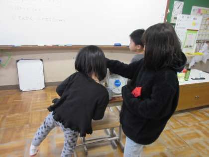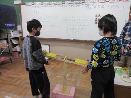 そして、それをてんびんを使って、つりあうかを確認しました。