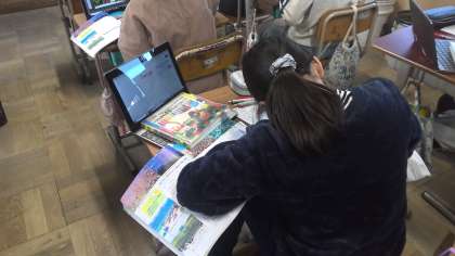 農業・観光・文化に分かれて教科書やGIGA端末を用いて