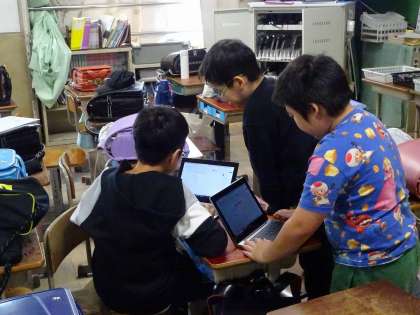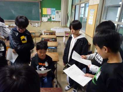 5.6年生が「司会・終わりの言葉・ナレーション・感想交流の進行・立て看板・プログラム作成・幕間」の係に分かれて準備活動をしました。