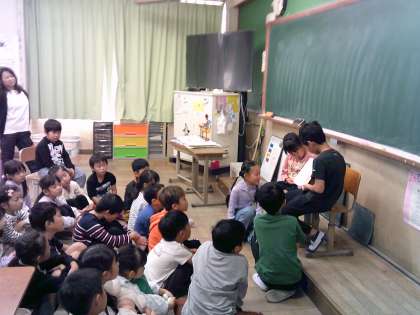 1年生への朝の読み聞かせの様子です。