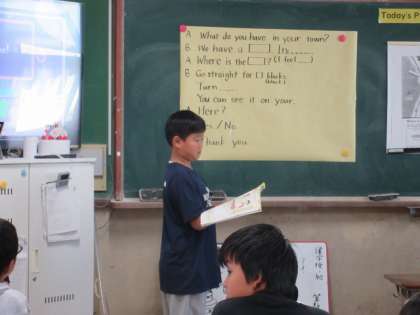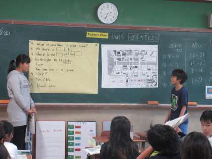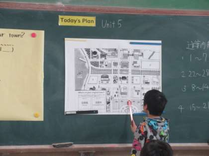 外国語の授業で、道案内のしかたを学習しました。自分のお気に入りのお店を紹介し、地図上でどこにあるかペアの友達に伝えました。最初は難しかった案内の仕方も、すらすら言えるようになりました。ぜひ普段の生活でも、京都を訪れた外国の方に道案内ができるようになってほしいです。