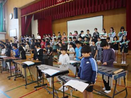 学年で立ち位置や合奏の練習、セリフの練習をしてきました。