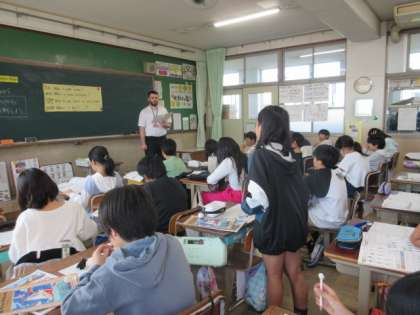 ALTのピーター先生に来ていただき、Unit5のまとめをしました。これまで学んできた誕生日の尋ね方や、道案内の仕方など、よく聞いて問題に取り組みました。