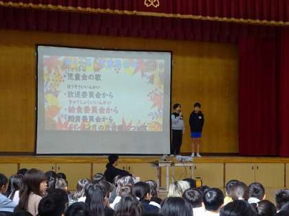 また、飼育委員会からは、「飼育ふれあい掃除体験」について話がありました。担当になった人は、ウサギのお世話を楽しく頑張ってください。