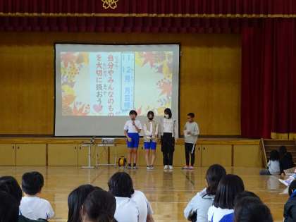 本部委員より11・12月の月目標「自分やみんなのものを大切に扱おう」の発表がありました。