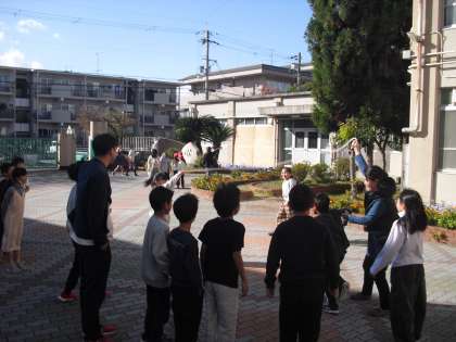 大なわを楽しそうにとんでいると、友達が次から次へと参加していました。