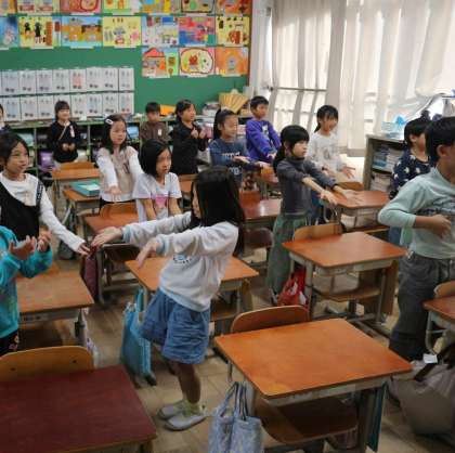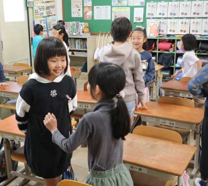 はじめに「How are you ?」「I'm happy」など挨拶から始まり、英語の歌などをしました。