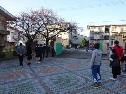 今日の振り返りとして、「あいさつはできていたが、だんだん声が小さくなっていたので、最後まで元気よくあいさつをしよう」「相手の目を見てあいさつすればいいのでは」など、生徒・児童から聞こえてきました。今後も小学生と中学生が同じ取り組みを通して、交流を深めていってほしいと思いました。そして、この桂川中学ブロックにもあいさつの輪を広げていきましょう。