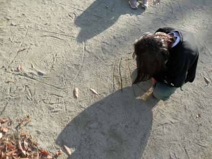 外に行った時、おもむろに漢字の学習がはじまりました。