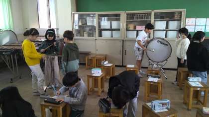 「音のせいしつ」の学習に入りました。少し前に行われた学習発表会でのことを思い出しながらビデオでみんなの合奏をもう一度聞きました。
