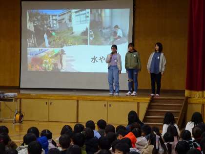 栽培環境委員会からは、毎朝の水やり活動やプルタブ集め、花のポスター作成・クイズや掃除についての発表がありました。