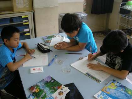 植物の発芽の学習で,インゲン豆の成長を観察しています。今日はヨウ素液でんぷん反応について学習しました。