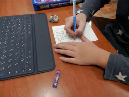 タブレットで調べながら、かわいい年賀状に仕上がりました。