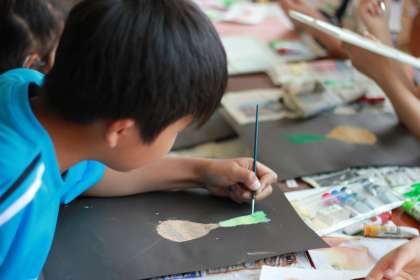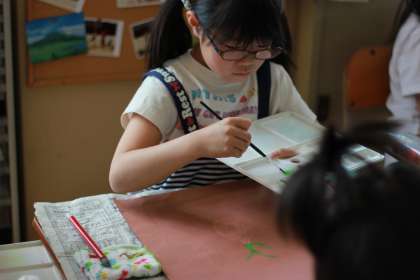 図画工作では,野菜をよく見て,自分の色で絵画を描きました。