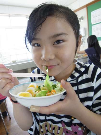 今回は,温野菜のサラダとゆで卵をつくりました。