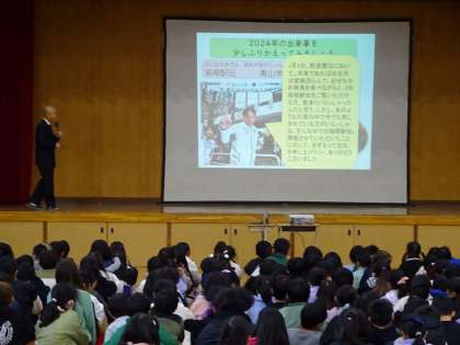 校長先生からは、写真付きで今年1年の出来事の振り返りの話がありました。