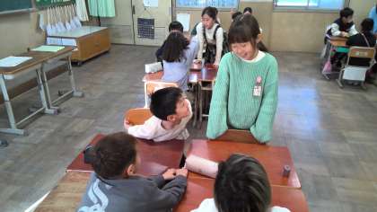 冬休みが明けて、国語の学習では「冬休みの私」について新しい班でスピーチしあいました。3年生の最初のころに比べて、ずいぶん話すのが得意になってきました。友達に自分の思い出の質問や感想をもらって、うれしそうな様子でした。