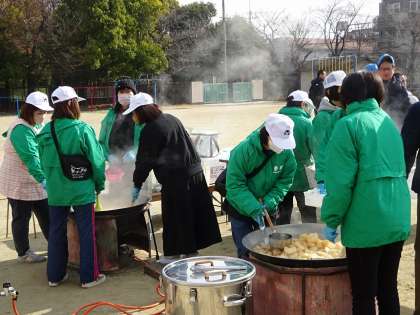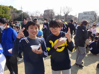 今年度も恒例の大根炊きが行われ、参加者はおいしそうに食べていました。また、豚汁もあり、みんな心も体も温まりました。何回もおかわりする姿が多く見られ、あっという間に完食していました。ごちそうさまでした。