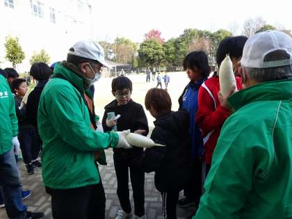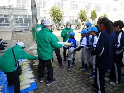 タスキリレーで入賞したチームや参加者には、賞品や大根のプレゼントもありました。大きな大根をもらい、みんな笑顔でした。