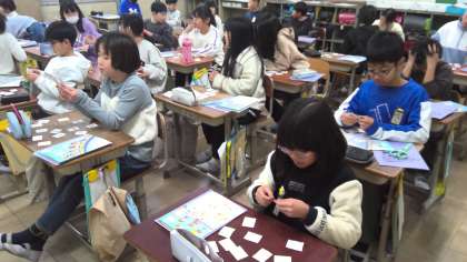 今日は、図工室や音楽室などを英語でどのように表すのかをカードゲームを通して確認しました。