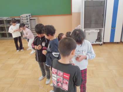 今日は、冬のあそび第2回目「こま」に挑戦しました。