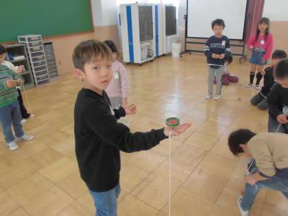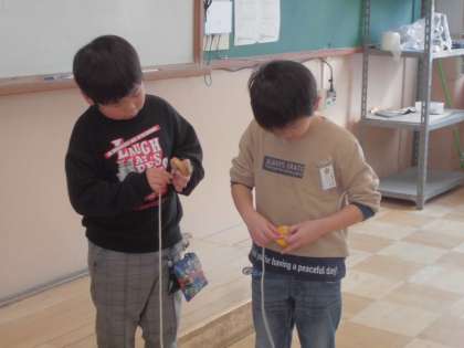 学童で「こま」にはまっている子が多く、とても上手に回していました。