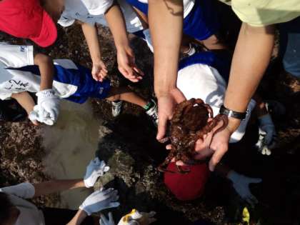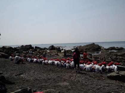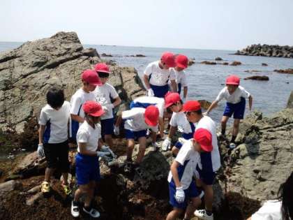 潮だまりがたくさんできて、いろいろな生き物を発見しました。