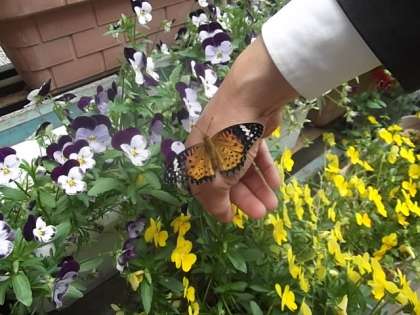 川岡東小学校でツマグロヒョウモンチョウが羽化しました。