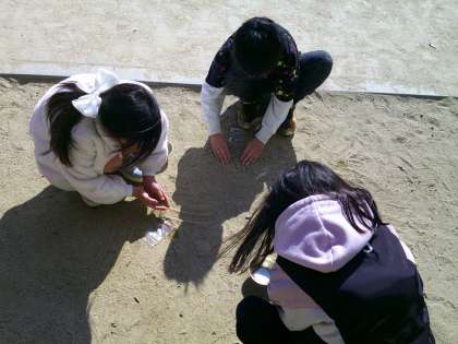 今日は、校庭で砂鉄を探しました。