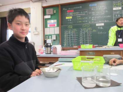 理科で、「ものの溶け方」の学習をしています。今日は、ミョウバンと食塩を溶かす実験をしました。温度によって溶ける量はちがうのか、溶けきった水溶液はこの後どうなるのか、興味津々に実験をしていました。