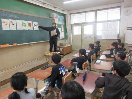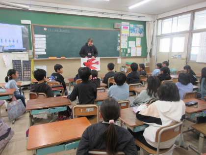 教室にALTのピーター先生が来て下さいました。