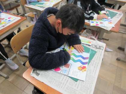 紙を回しながら、自分のおへそに向かって真っ直ぐ動かすことを意識しました。