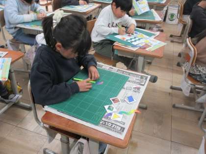 カッターを使って、真っ直ぐな線や曲がった線を切りました。